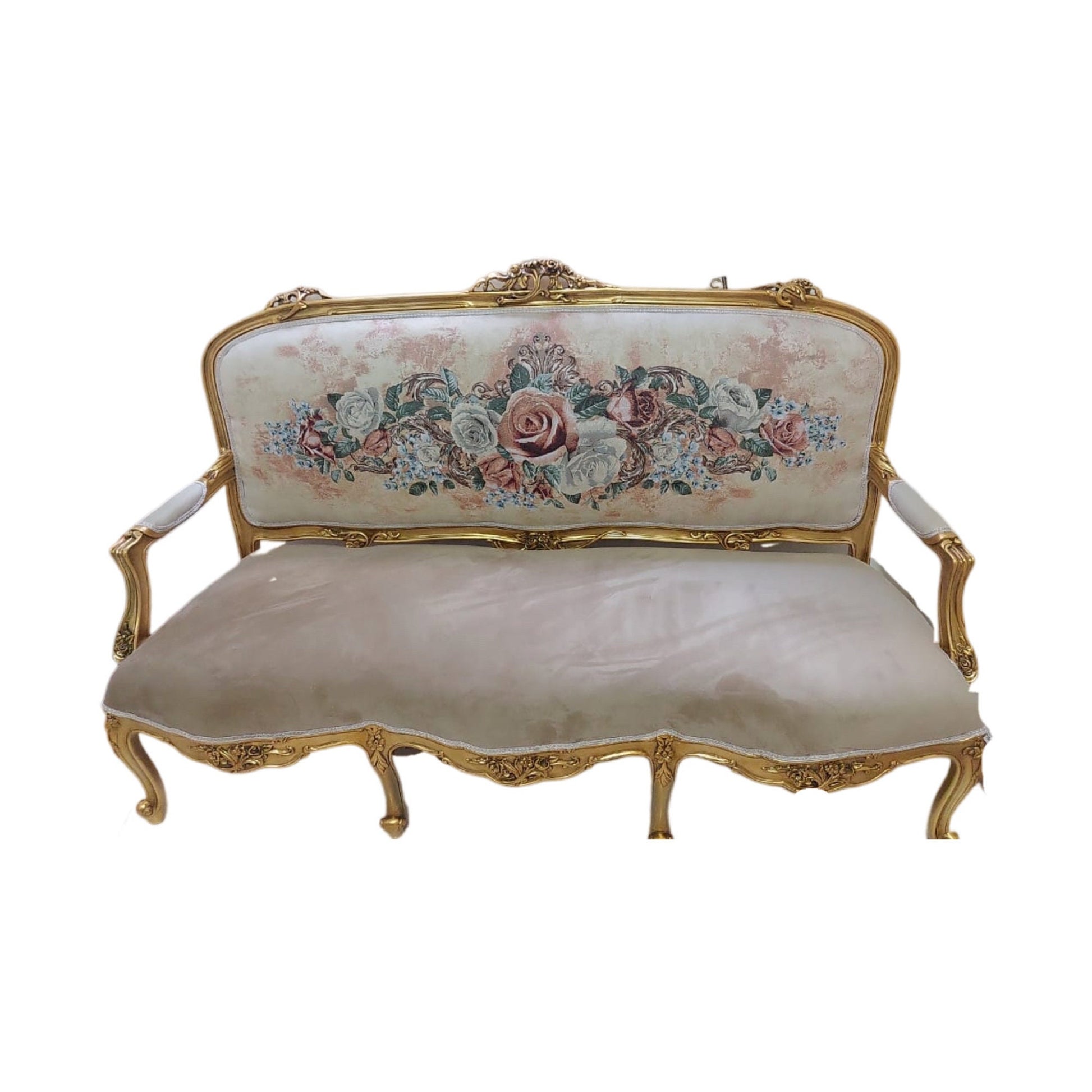 French Giltwood Settee set , Style Louis XVI, beige 19th Century ( 1 sofa + 2 chairs )