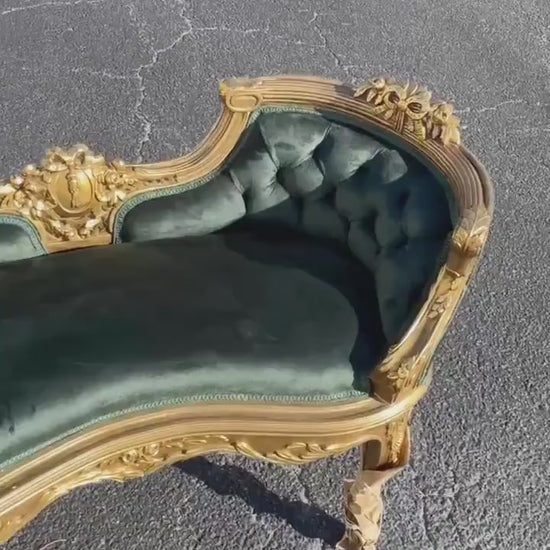 Luxury French mini gilt wood sofa green suede-Out Of Stock -Made to order