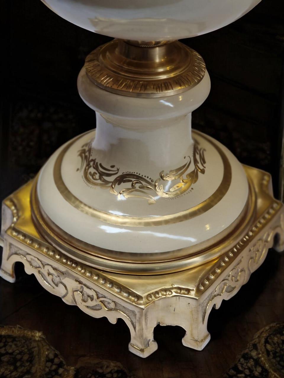 Add a majestic statement to your home decor with this stunning 3-piece French-style porcelain urn and centerpiece set. Showcasing opulent hand-painted artistry and intricate gilded bronze detailing, this set draws inspiration from royal European interiors and classical Rococo aesthetics.
