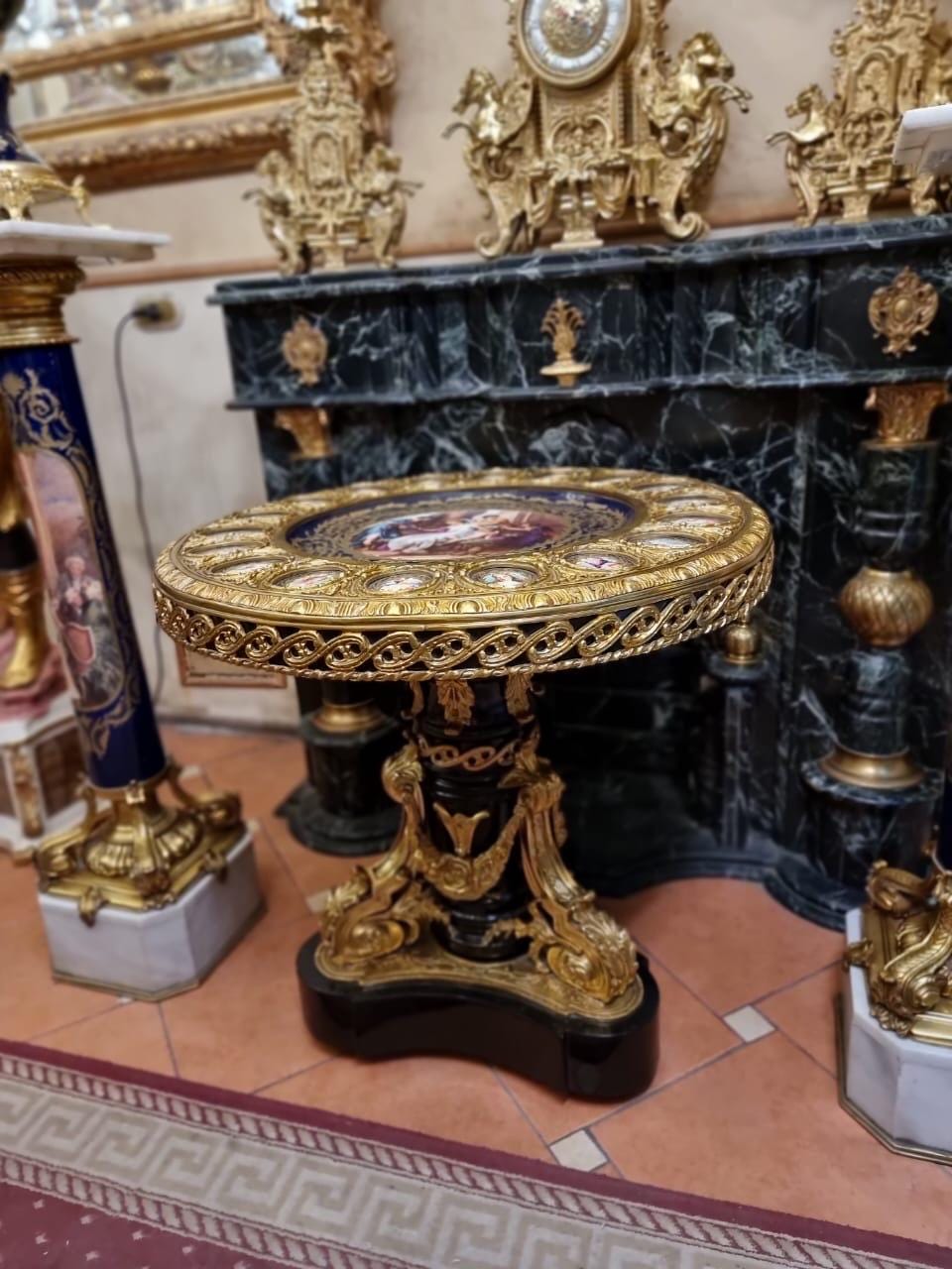 Unique Royal Salon Porcelain and Gilt Bronze Round Table – Hand-Painted with Classical Motifs